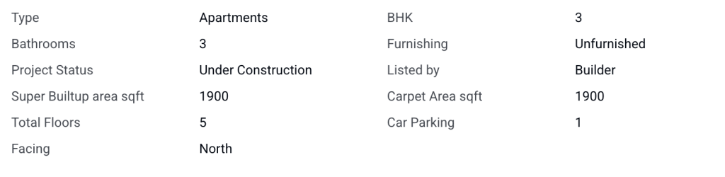 PRICE: ₹ 75,00,000 – 3 BHK – 3 Bathroom – 1900 sqft