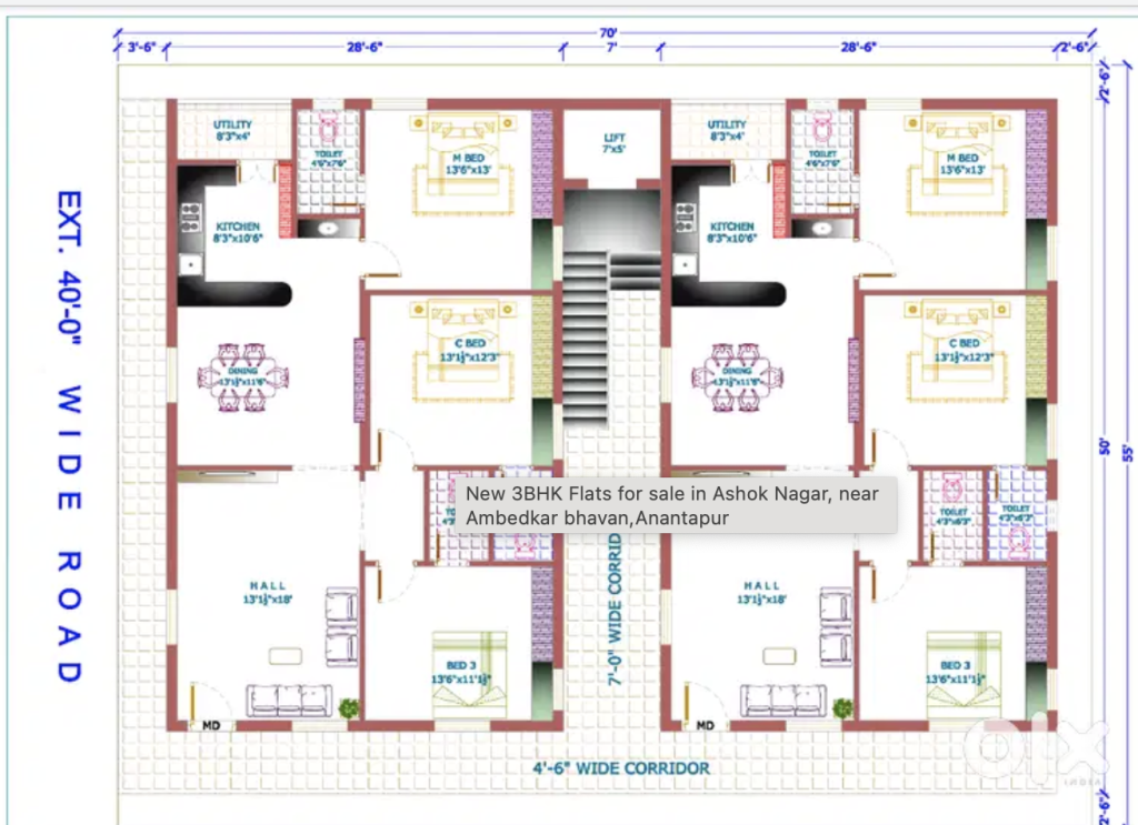 - 1 Hall, 1 Dinning Hall, 1 Puja Room, 1 Kitchen with Utility,
